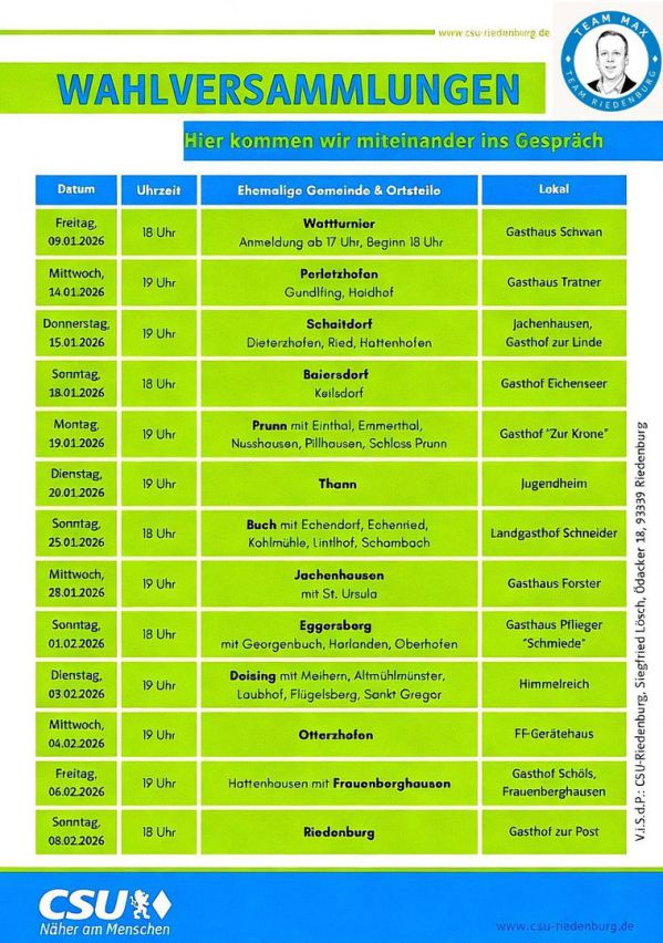 "Team Max" der CSU Riedenburg komme ich im Januar und Februar zu Euch vor Ort